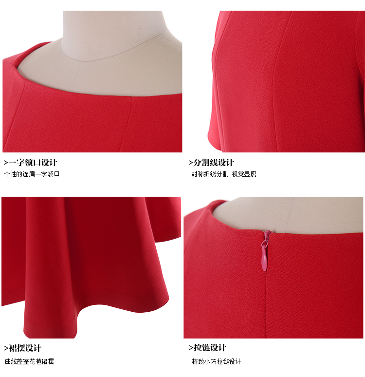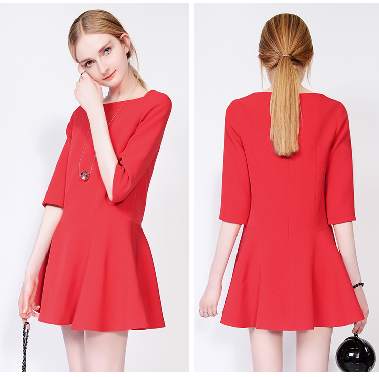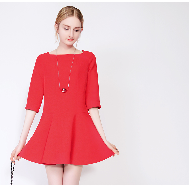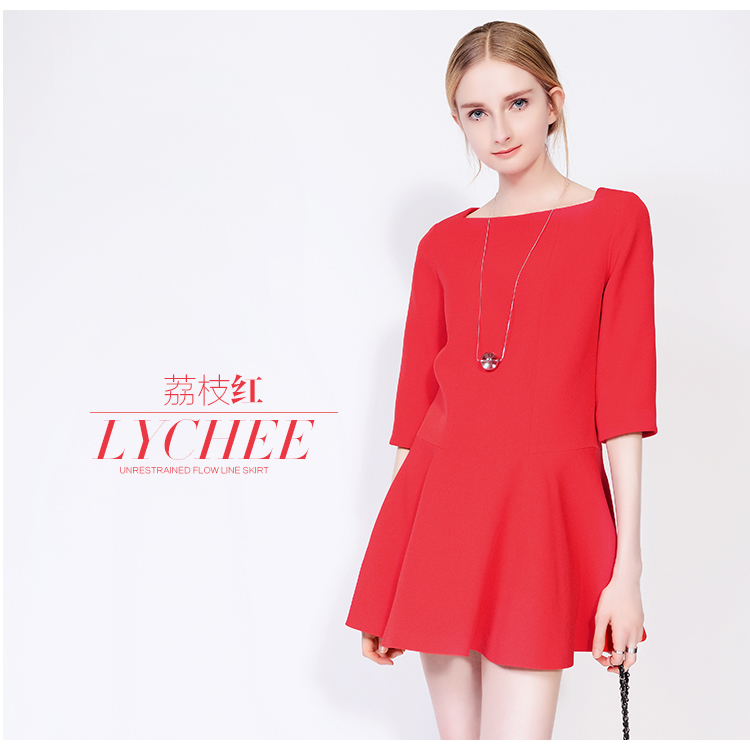 2016 new fall sugar Europe red waist slim lady simple color skirt dress red lychee red S