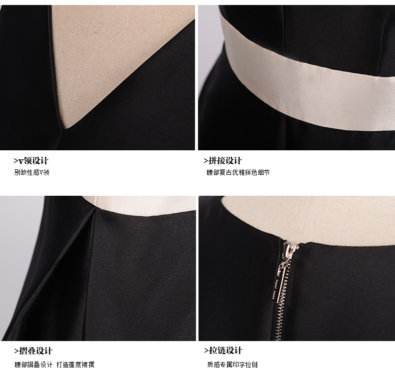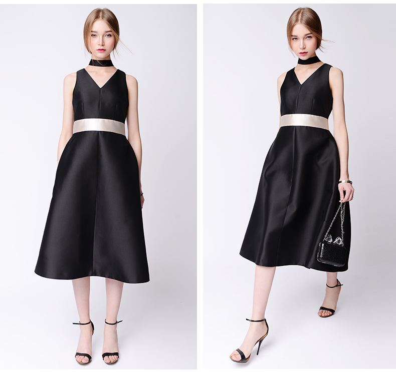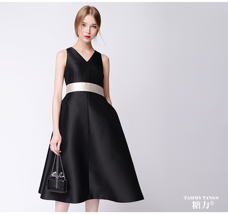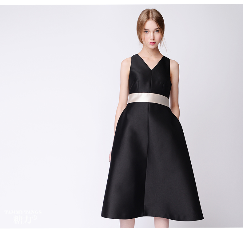 Sugar 2016 new spring and black lady V a confused black skirt sleeve dress dress in black dress Black L