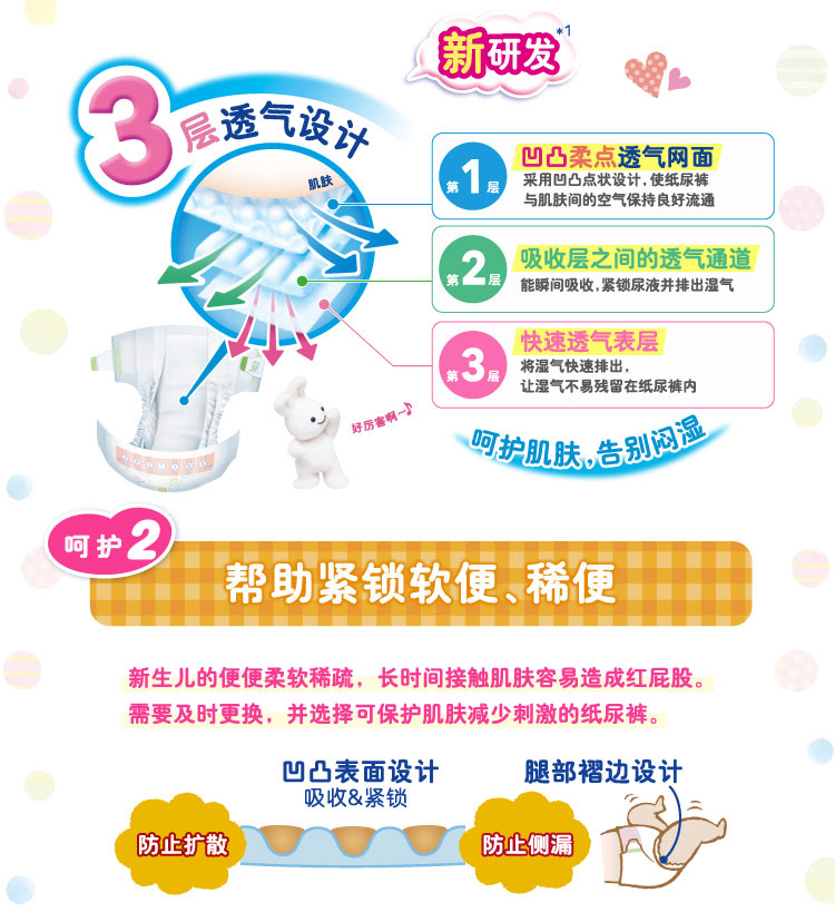 Soft and soft mesh layer, moisture is not residual, small fart dry and comfortable, baby care delicate skin!