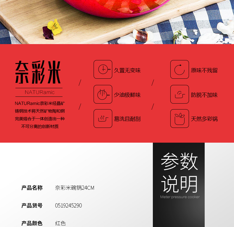 WMF Fu Teng Bao NATURamic Nai coloured rice imported from Germany nonstick pot multifunction bowl pot 24CM red