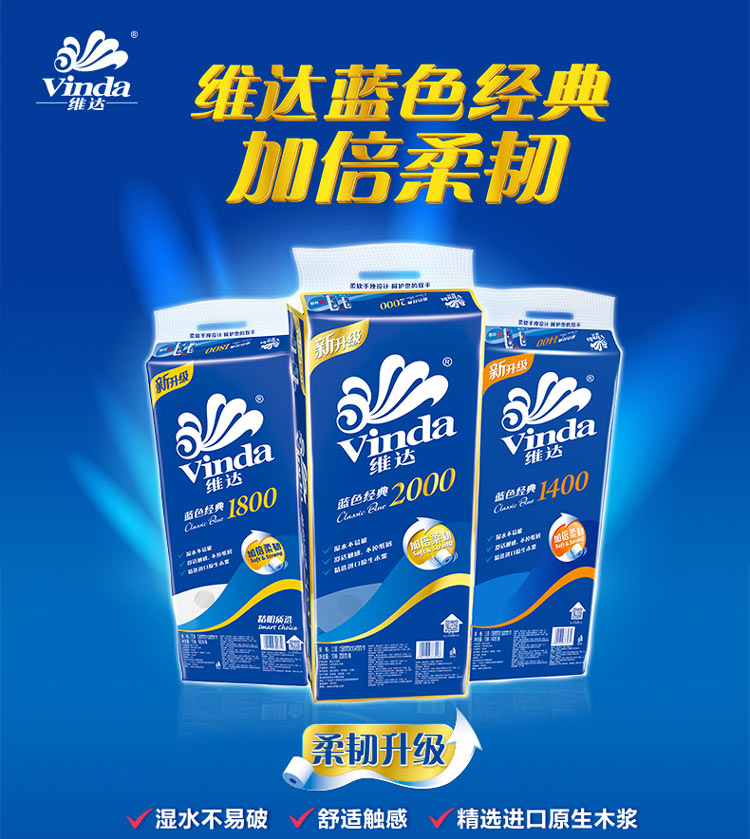 Vinda (Vinda) toilet paper, blue classics, rolls, 3 layers, 180g*30 rolls