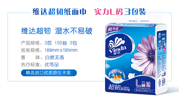 Vinda (Vinda) pumping paper, super tough series, soft pumping 3 layers, 150 pumping *3 bag (large size)