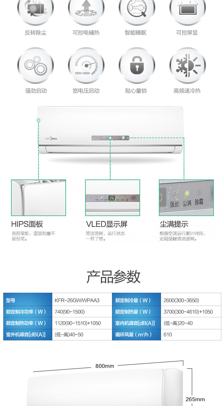The United States (Midea) a large Jingdong hero wall heating air inverter air conditioner KFR-26GW/WPAA3 白色 正1.5匹