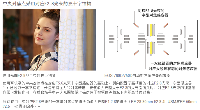 全面升级的普及型数码单反相机EOS 760D搭载约2420万有效像素CMOS图像感应器和DIGIC 6影像处理器,实现了清晰锐利的高画质影像,全19点十字型自动对焦感应器可快速捕捉瞬间即逝的精彩。值得一提的是EOS 760D,机身上特别配置了一般只有中高端单反才有的肩屏和速控转盘,使得操作更加灵活方便,并可实时了解各种关键拍摄参数,另外,电子水准仪的加入,新的HDR短片功能,让拍摄更加得心应手。