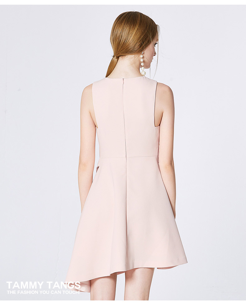 Sugar 2017 new spring Couture Pink collar sleeveless dress waist slim lady dress powder pink S