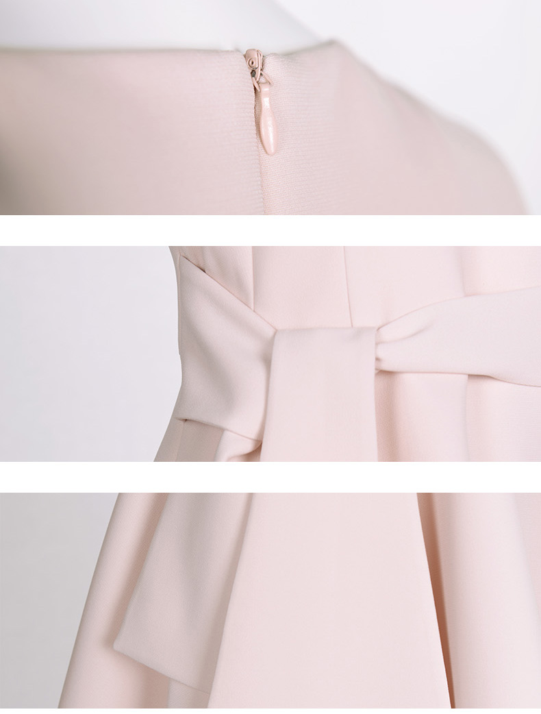 Sugar 2017 new spring Couture nude five sleeve waist dress slim skirt nude color silver S